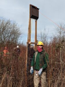 Earlier this year, City of Olympia’s Parks, Arts and Recreation staff along with local volunteer bat experts, Saunders Freed and Greg Falxa, installed a new nursery box at West Bay Park.